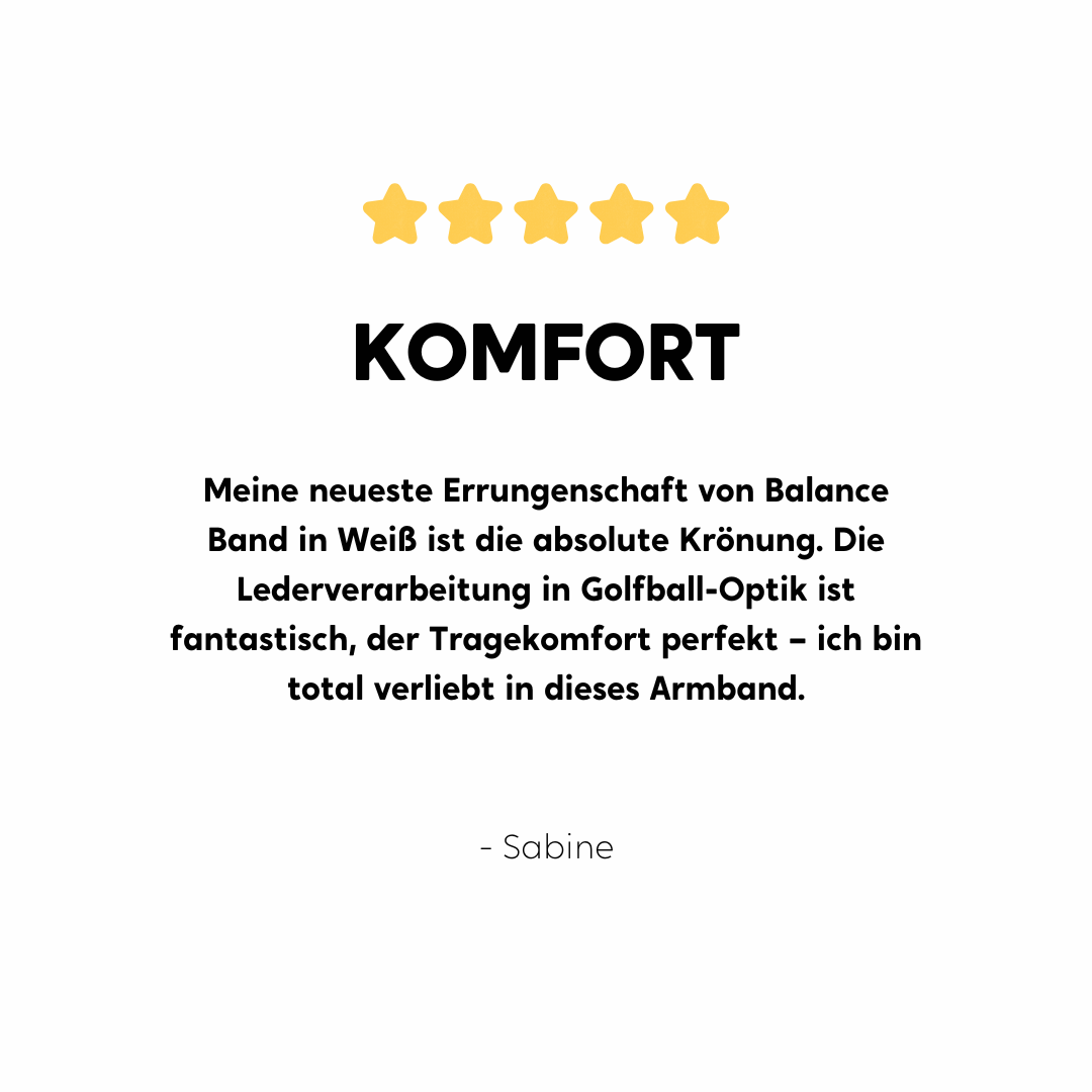 Das Balance Band™ White Eagle wurde speziell für Golfer:innen entwickelt, die auf und abseits des Platzes ein Zeichen setzen möchten. Inspiriert von der markanten Struktur eines Golfballs, überzeugt dieses Armband mit einem weißen, fein perforierten Leder, das sportlichen Charakter und stilvolle Eleganz perfekt vereint.