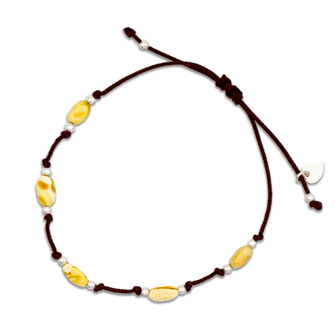 Elegant Healing Bracelet Made of Creamy White Amber with Brown Cord