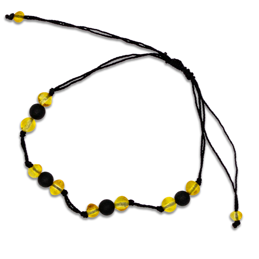 Healing Armband mit unpoliertem schwarzen & farblosem Naturbernstein